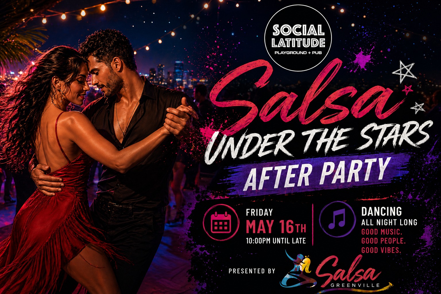 View Larger Image Salsa Under The Stars After Party Details Date: May 16 Time: 10:00 pm Website: Event Website Venue 1812 Woodruff Road, Greenville, SC, United States, South Carolina 29607 Come join us for the Salsa Under The Stars After Party. By Latti the Fox|2026-04-27T13:21:57+00:00April 27th, 2026|0 Comments Share This Story, Choose Your Platform! FacebookXRedditLinkedInWhatsAppTumblrPinterestVkEmail About the Author: Latti the Fox Leave A Comment Cancel replyComment Save my name, email, and website in this browser for the next time I comment. Type in the text displayed above